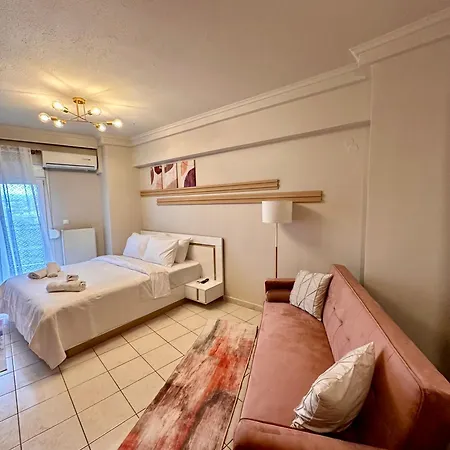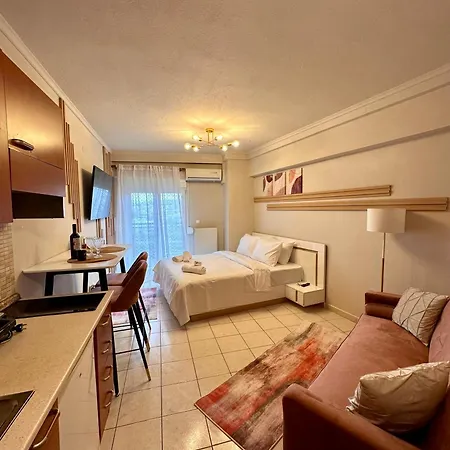 Dine egne måltider kan tilberedes i et tekøkken. Palios Sidirodromikos Stathmos busstation ligger 5 minutters gang derfra.